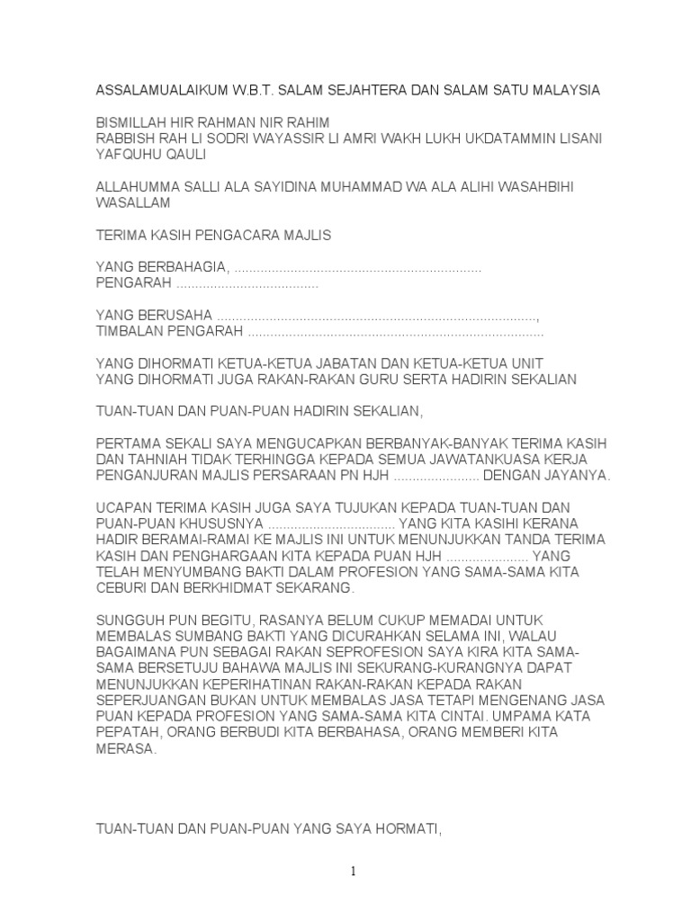 Bahasa melaupm 3211 p4teks ucapan 2. Berikut terdapat beberapa contoh ucapan perpisahan yang bisa kamu berikan kepada seorang atasan. Rincian Ucapan Perpisahan Kerja Bahasa Malaysia.